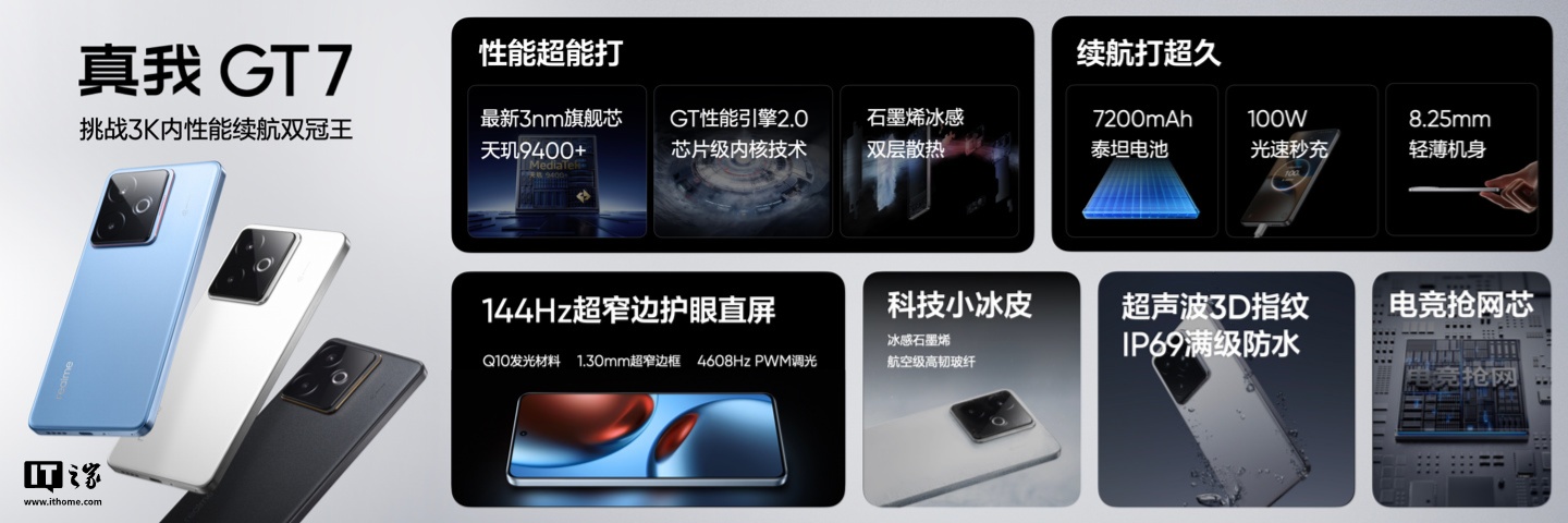 据此前报道,realme 真我 GT7 手机于今年 4 月 29 日正式开售,该机搭载联发科天玑 9400+ 处理器、内置 7200mAh 泰坦电池,定价 2599 元起、国补价 2210 元起(5 月 18 日 24:00 前支持 24 期免息)。