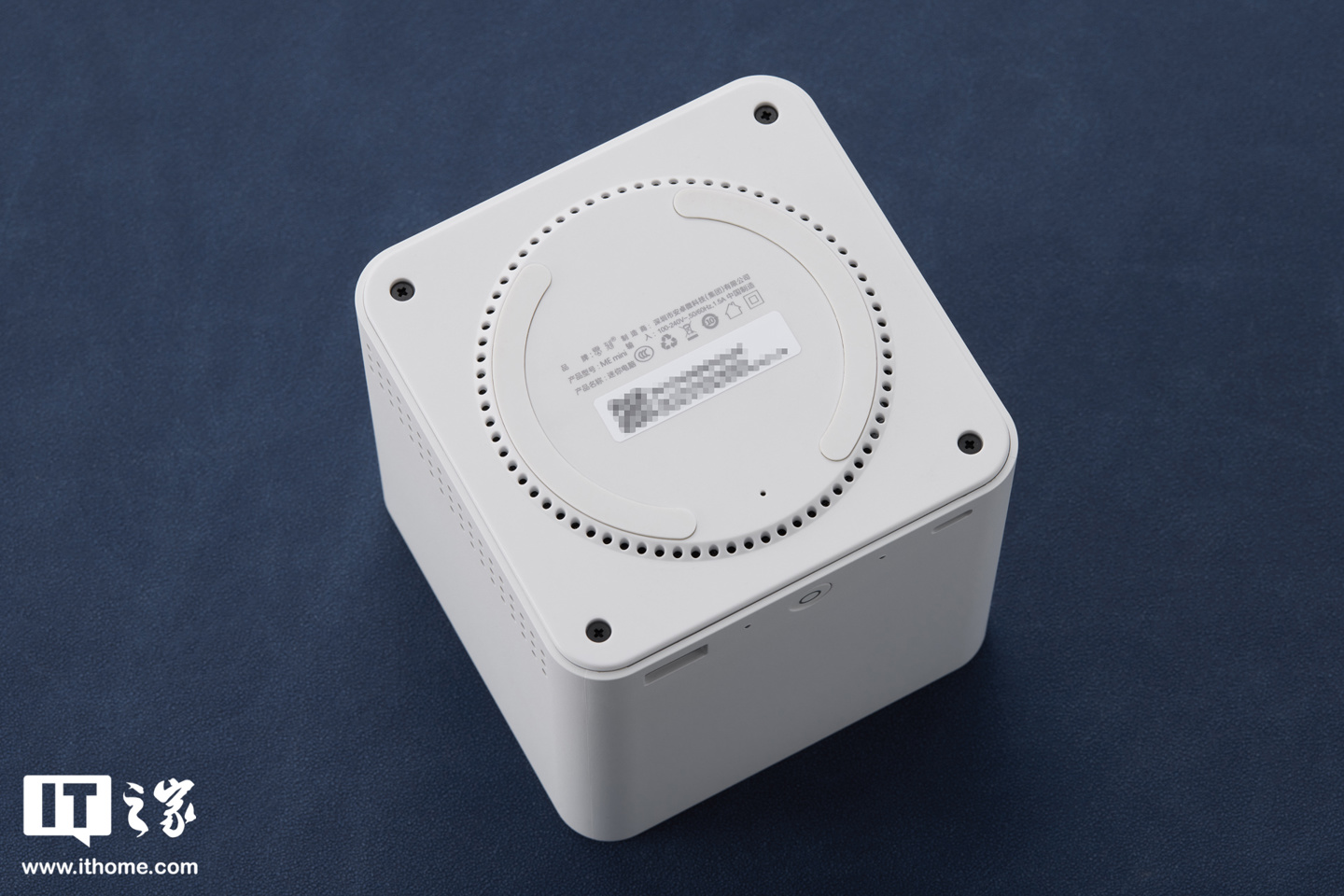 除去外包装,我们直接可以直接看到 ME mini 真机,其外形要比想象中更小,单面尺寸接近于手掌大小(具体为 99×99×98.3mm)。
