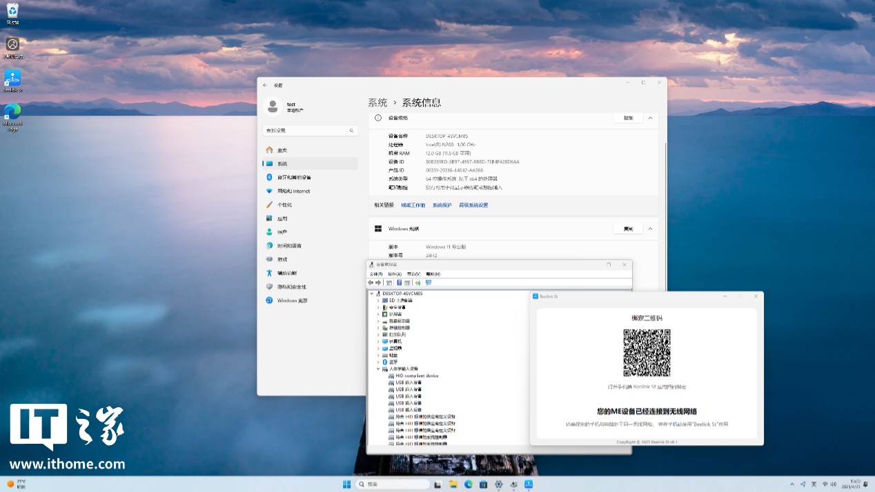 这款小主机内置了 64GB 的 eMMC 存储,开箱预装正版 Windows11 专业版(24H2)系统,开机联网即可自动激活,比较适合轻办公类用户使用。