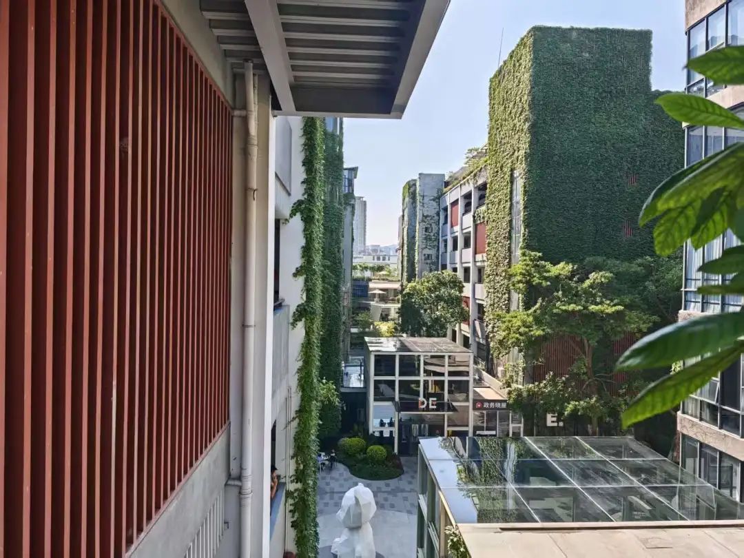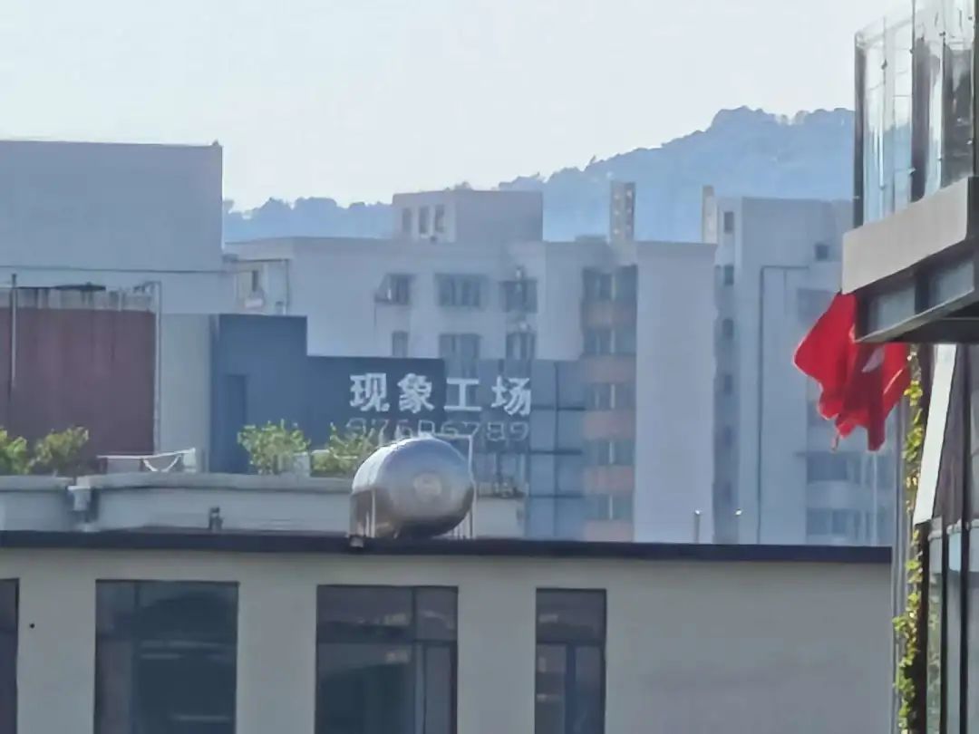 首先,我们随便从高处拍摄一张园区里的照片,不难看出,远方的红旗和更远处的园区名字基本上都是看不清楚的。