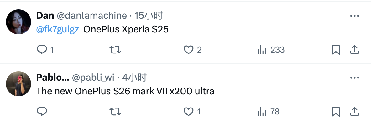后续,有网友在该消息人士的发文中回复,戏称该机有点像是“索尼 Xperia 1 、三星 Galaxy S 系列手机的缝合体”。