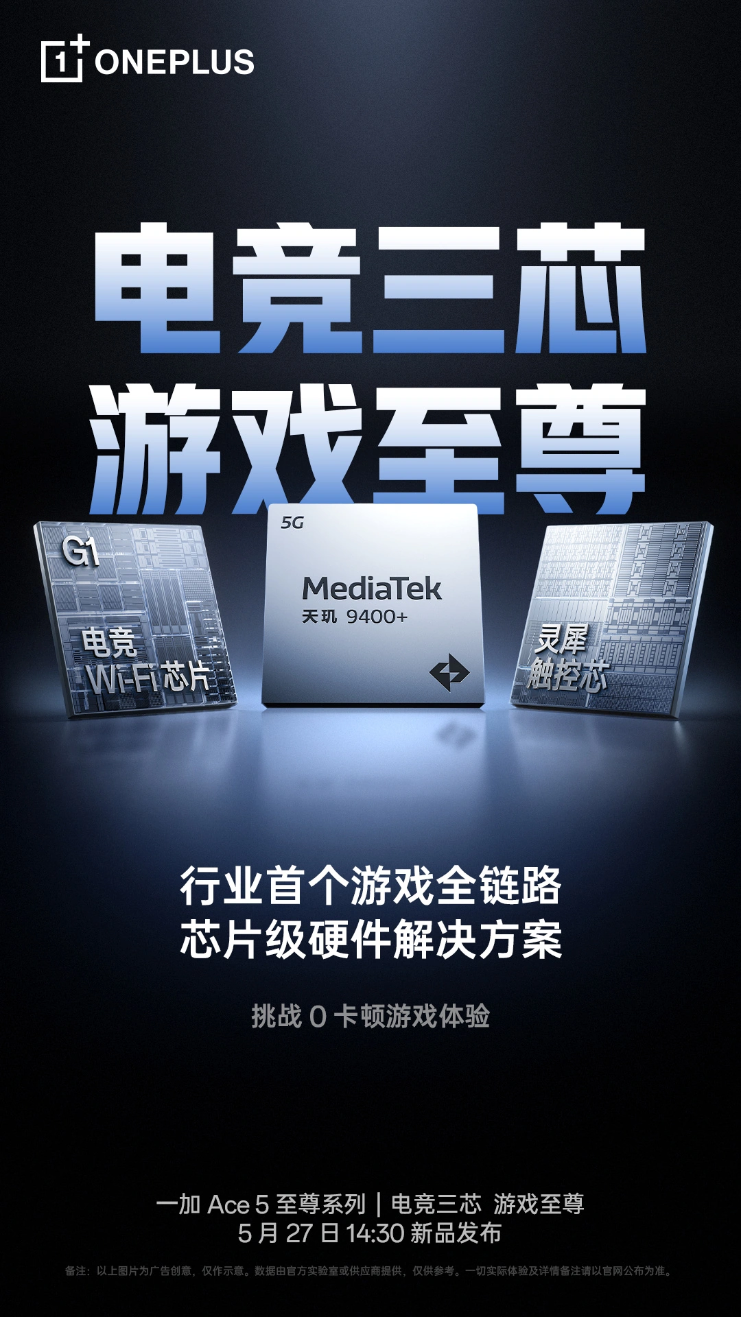 预热信息显示,一加 Ace5 至尊系列首发游戏全链路芯片级硬件解决方案,搭载联发科天玑 9400+ 处理器 + 灵犀触控芯 + 电竞 Wi-Fi 芯片 G1。