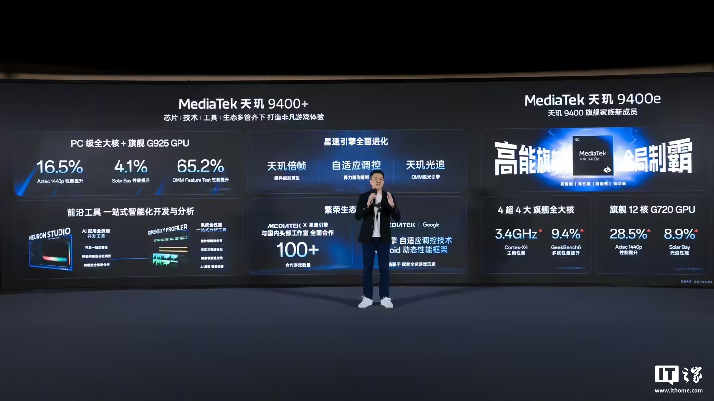 联发科天玑 9400e 处理器于 5 月 14 日发布,由一加 Ace5 竞速版手机首发。天玑 9400e 是天玑 9400 旗舰家族新成员,CPU 采用「四超 + 四大」 全大核设计、12 核 GPU 架构,主频达到 3.4GHz。
