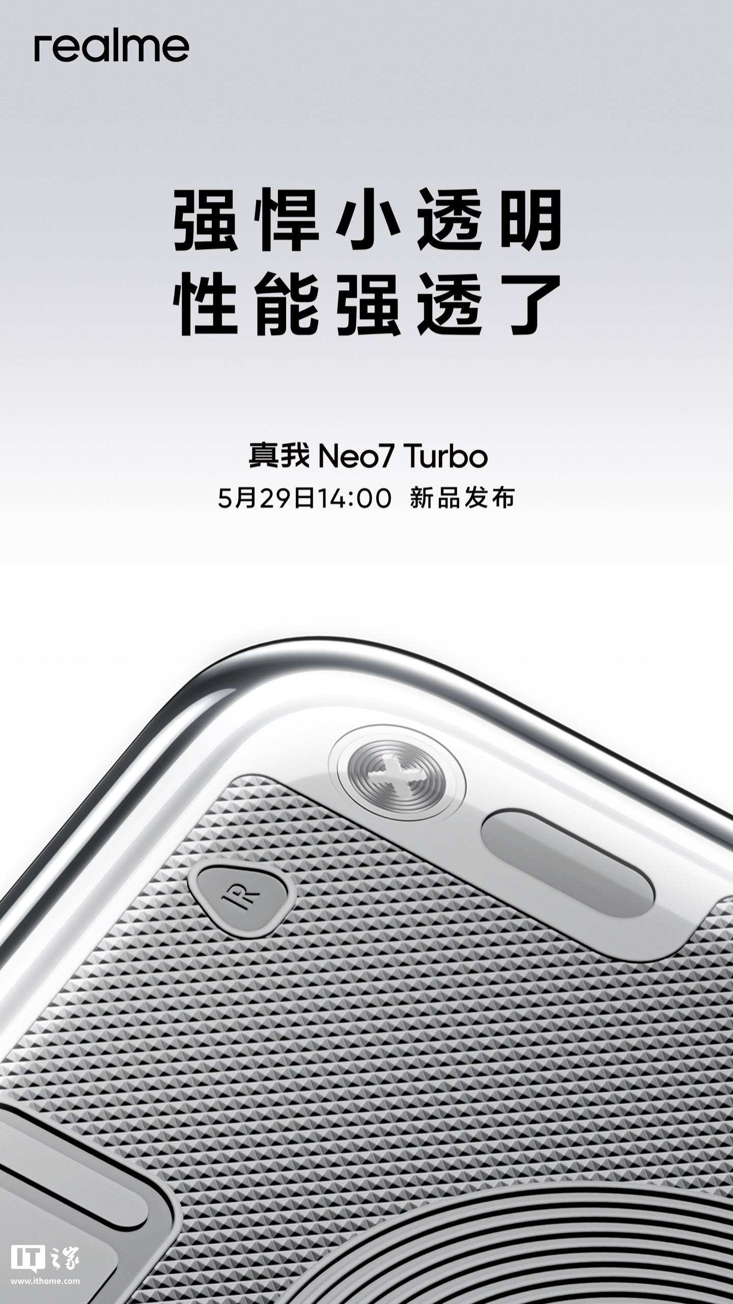 IT之家 5 月 21 日消息,真我手机官方今日宣布,realme 真我 Neo7 Turbo 将于 5 月 29 日 14:00 发布,新机号称“强悍小透明,性能强透了”。