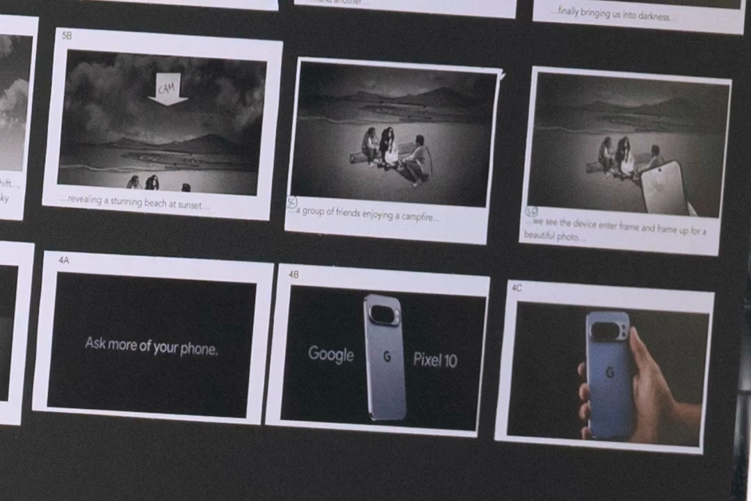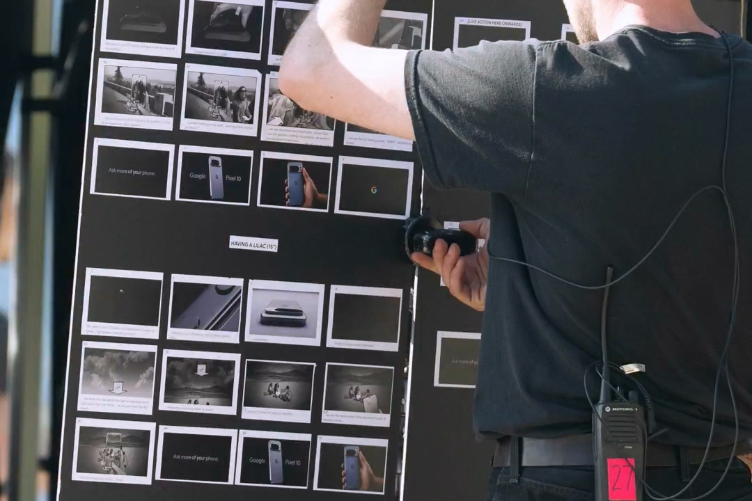 消息源称他在加拿大温哥华目击了一场“完整的谷歌 Pixel 10 广告拍摄”,现场曝光的故事板明确标注了“Pixel 10”字样,广告标语为“Ask more of your phone”(对你的手机提出更多要求)。IT之家附上相关图片如下: