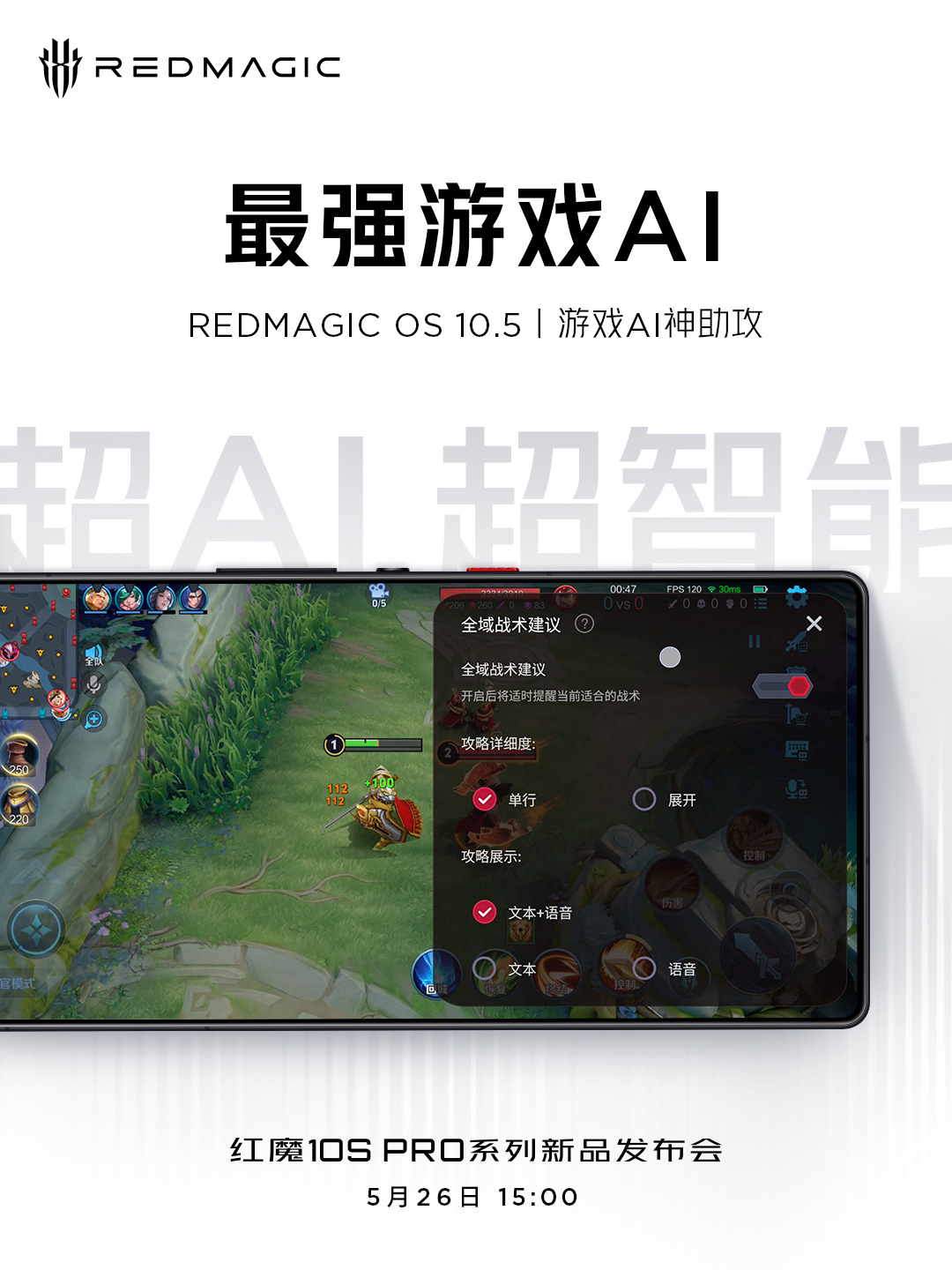 红魔 10S Pro 系列手机搭载 REDMAGIC OS 10.5,内置“最强游戏 AI”
