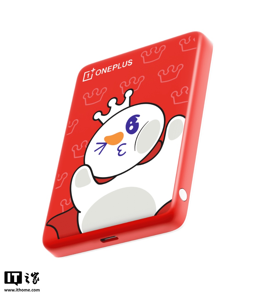 一加磁吸能量卡 Air 雪王版:基于 OPPO 磁吸能量卡 Air,容量为 5000mAh,兼容 OPPO Mag 磁吸生态,支持苹果、安卓平台磁吸无线充电,USB-C 接口兼容 PD 协议,输出功率可达 10W。