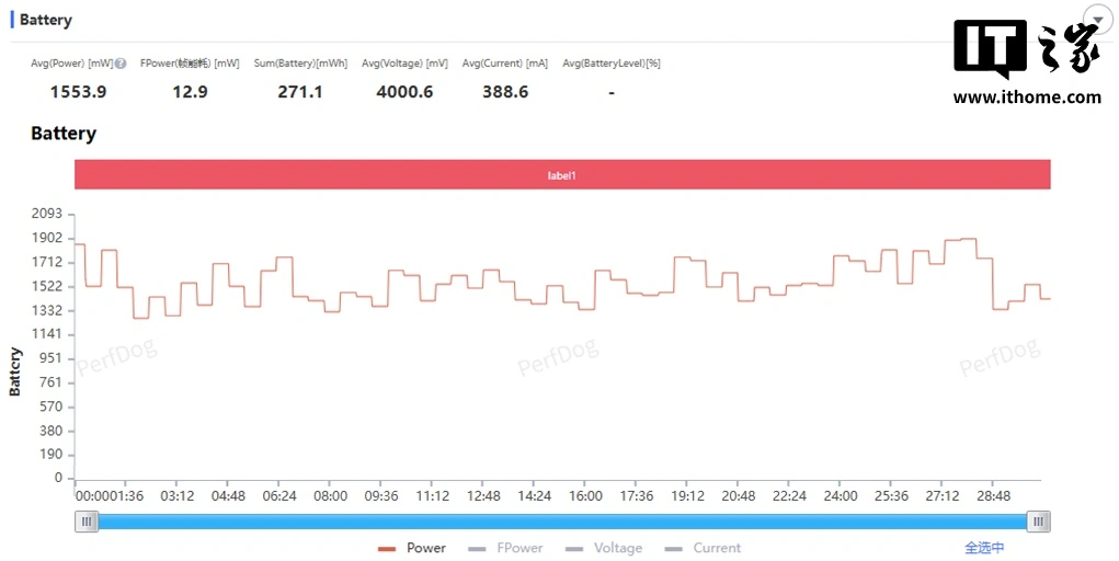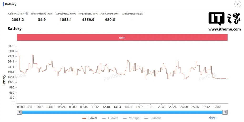 再看看整机平均功耗为 2.095W,因为是双电芯直接乘以 2,也就是 4.19W。很显然 60 帧上限的《原神》,一加 Ace 5 至尊版挑战起来已经毫无压力。