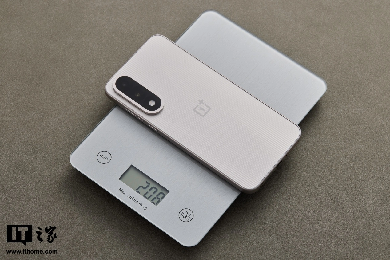 重量方面,一加 Ace 5 至尊版控制在了 206 克,实测为 208 克。针对大屏的握持体验,一加还做了均衡配重和边框 R 角优化,镜头 Deco 包边优化等,让游戏时的握持手感足够舒适。