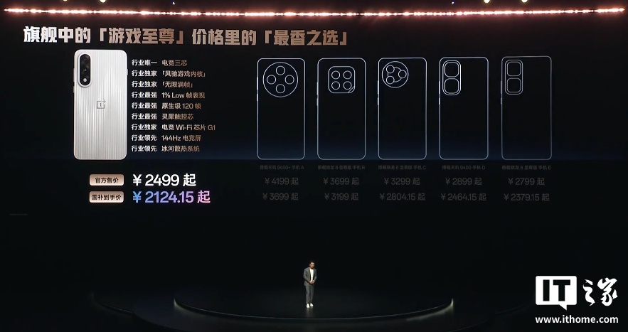 IT之家 5 月 27 日消息,一加 Ace 5 至尊版手机今日正式发布,宣称是行业首台“电竞三芯”旗舰,售价 2499 元起,国补后 2124.15 元起,即刻全渠道开售,618 全程价保。IT之家附价格表: