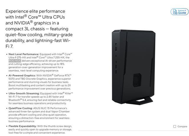 此外,NUC 15 Performance 的官网页面中甚至直接提到了 ROG NUC: