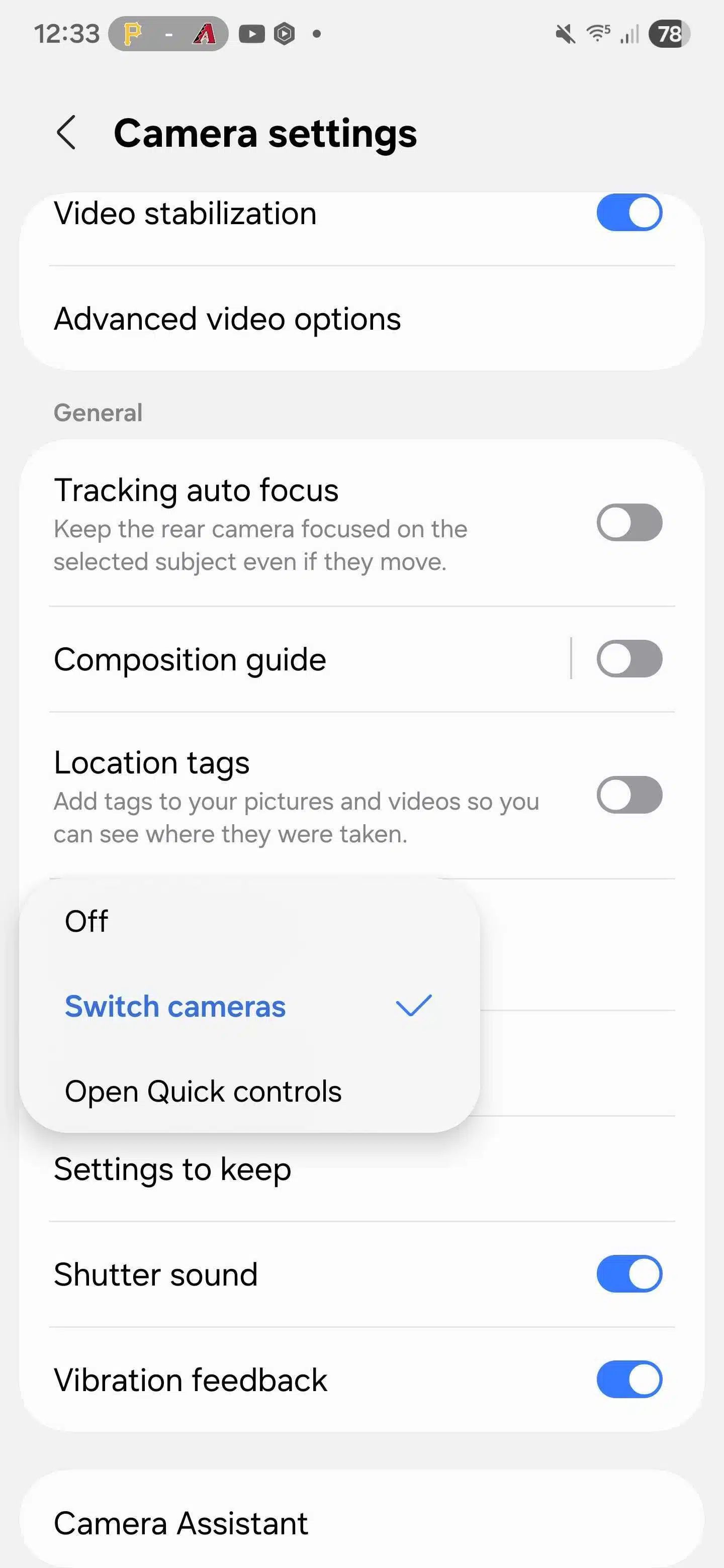 One UI 8 让访问相机快捷控制变得更快,用户只需在预览屏幕上向上或向下滑动即可打开它们。你还可以在相机设置中设置此操作,选择通过简单的滑动手势打开快捷控制。