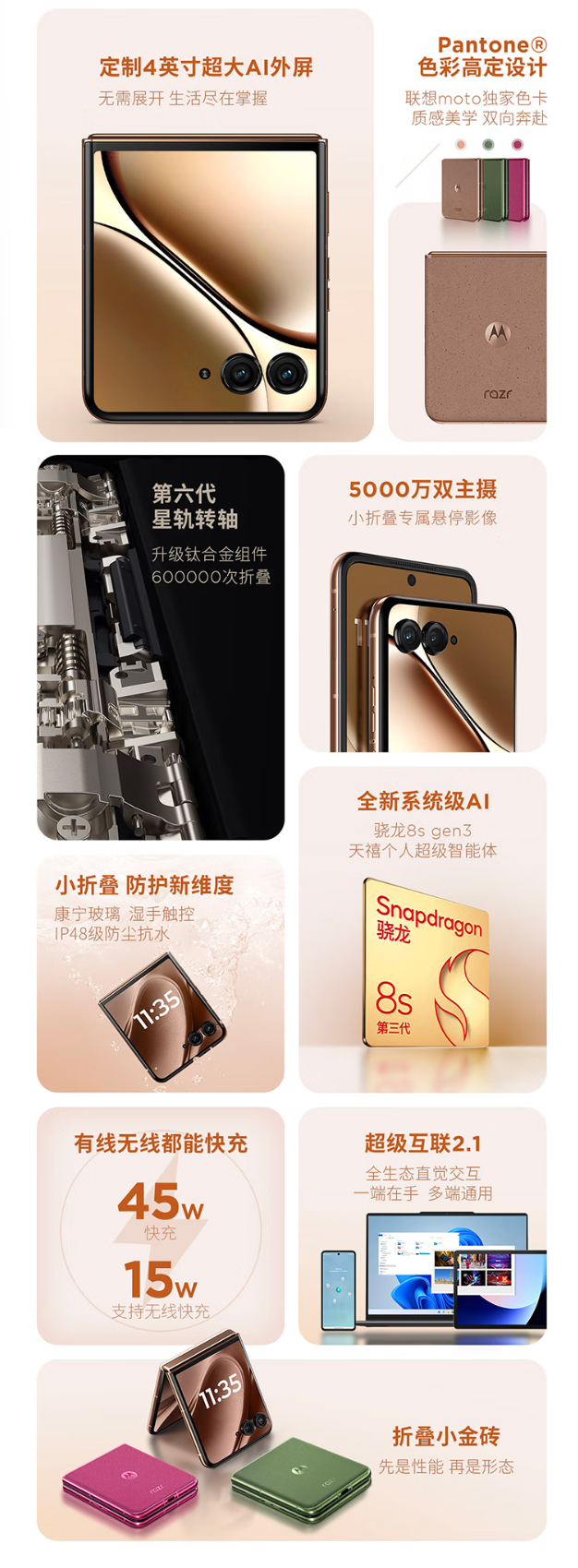 文章来源于互联网:IT之家-联想 moto razr 60 Pro 折叠屏手机开售:骁龙 8s Gen3 处理器,首发 5699 元起(国补价 5199 元起)