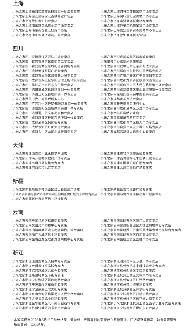 门店查询路径:小米商城 App-服务-附近服务-服务中心门店。
