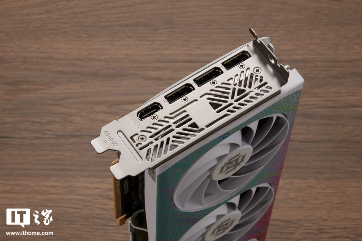 I/O 接口挡板部分与卡身厚度基本一致,提供 3*DP2.1b+1*HDMI2.1b 的接口组合。