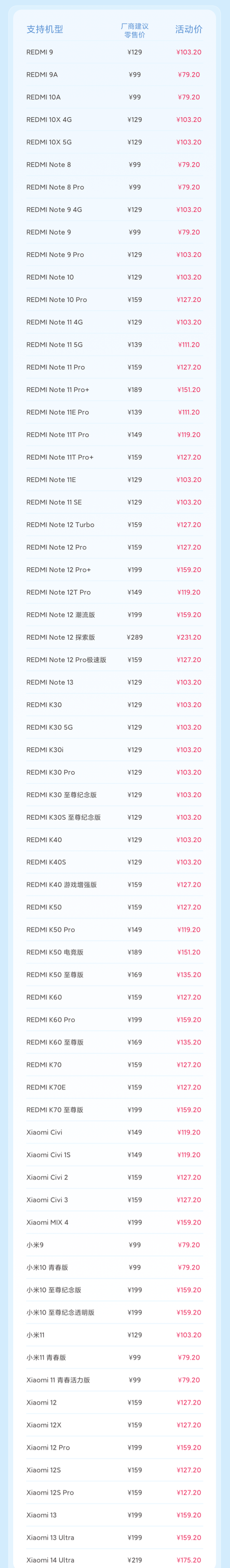 文章来源于互联网:IT之家-小米六月服务周上线:手机电池换新 79.2 元起,平板电池换新 8 折优惠