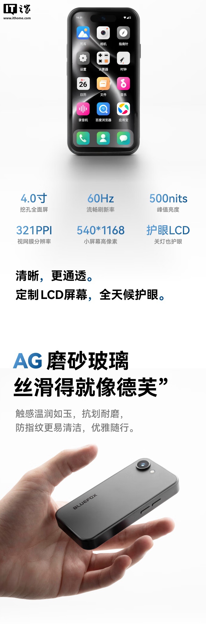 文章来源于互联网:IT之家-蓝狐推出 NX1 迷你手机:4 英寸打孔 LCD + 后置单摄,搭 Helio G81,599 元起