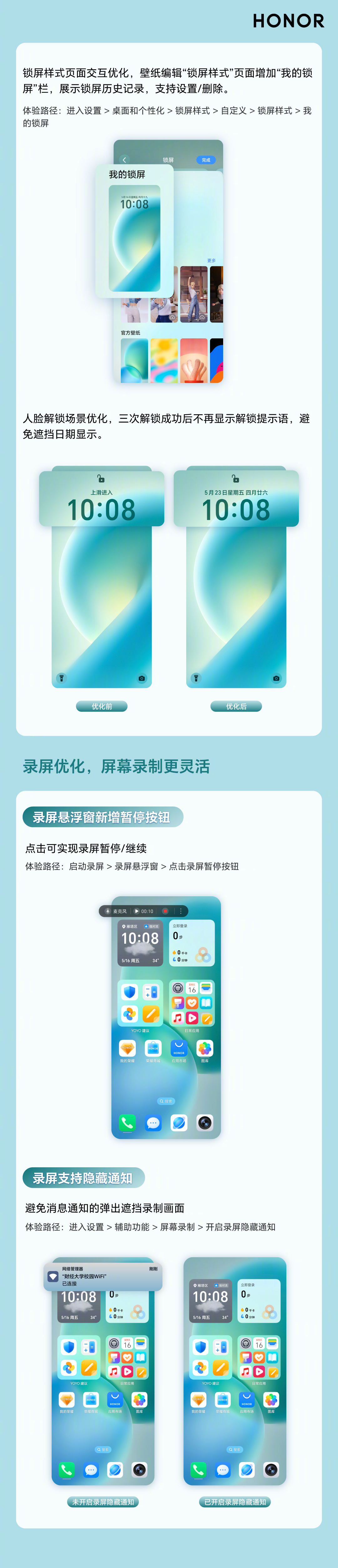 荣耀手机 2025 年体验升级第五波新版本已于 2025 年 5 月 29 日起陆续分批推送,适配 Magic7 /6 /5 /4 系列、GT 系列、数字 80 / 90 / 100 / 200 / 400 系列等超 50 款机型。IT之家附更新内容如下: