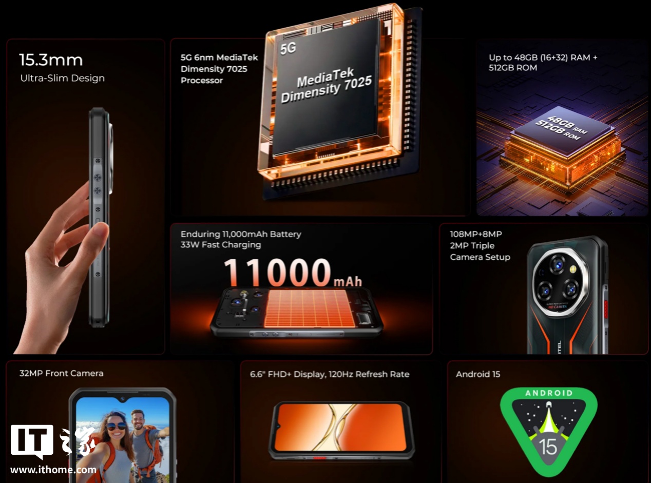 IT之家 6 月 5 日消息,Oukitel 发布新款三防智能手机 WP55 Pro 5G,主打坚固耐用,预装安卓 15 系统,配备 11000mAh 容量电池,充电功率 33W。