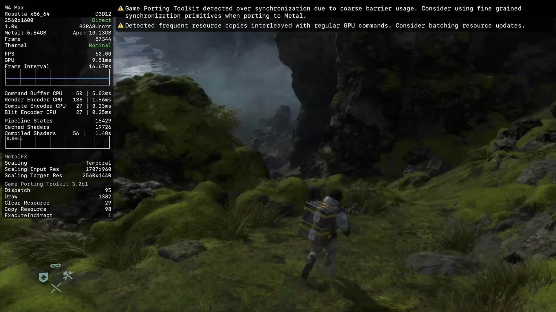 MetalFX 系统也新增了帧插值(Frame Interpolation)和去噪(Denoising)功能,前者能够为每两个输入帧生成一个中间帧,从而让帧率更高、更稳定;而后者则可为最先进的游戏实现实时光线追踪和路径追踪。