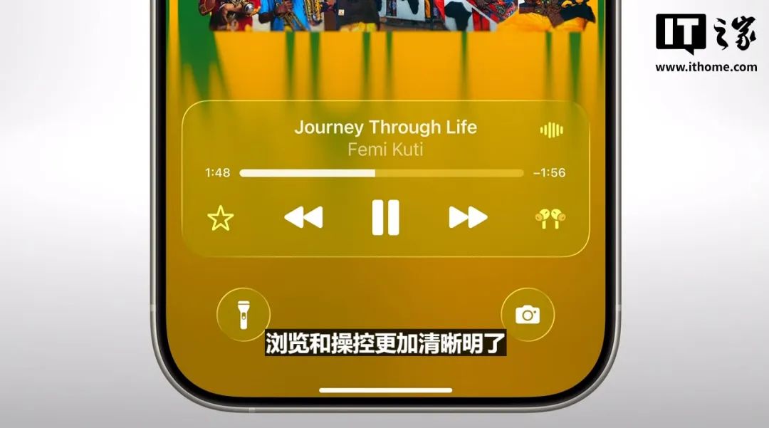 这种革新也包括玻璃边缘和响应方式,动画效果可以与播放控制在屏上巧妙互动。