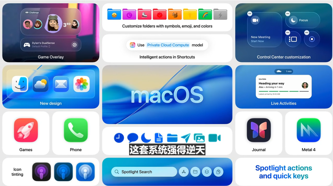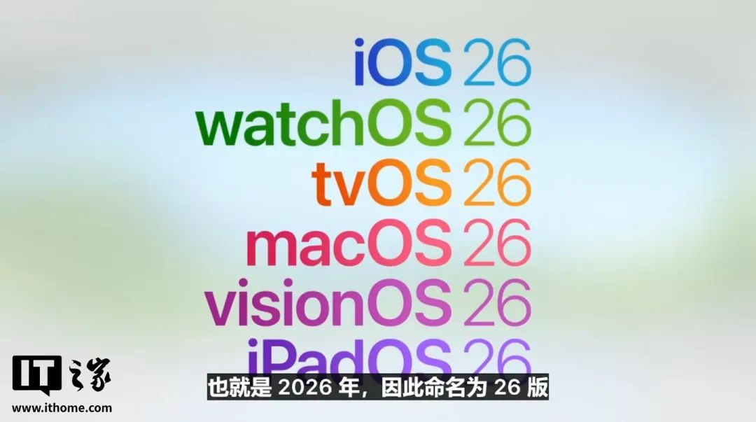 新一代系统的版本号集体变为“26”:iOS 26、watchOS 26、tvOS 26、macOS 26、visionOS 26、iPadOS 26。