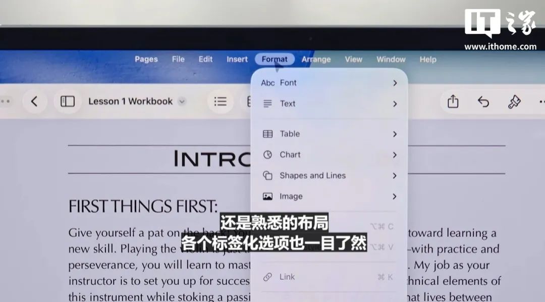以及,苹果还为 iPad 增添了菜单栏,可以从屏幕上方随时取用。