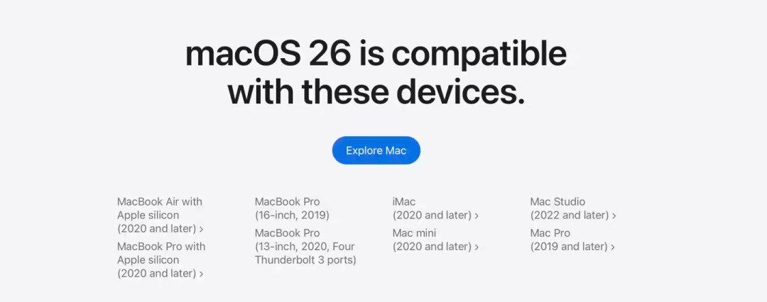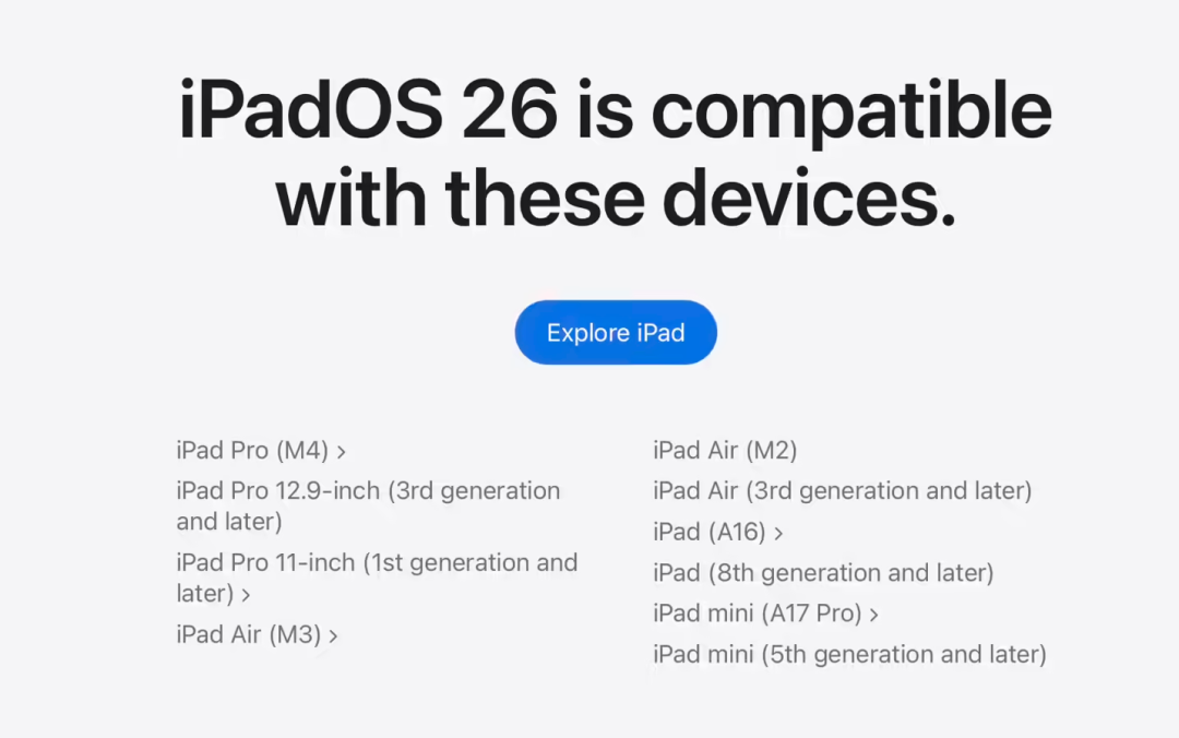 iPadOS 26 和 macOS 26 的可适配机型名单,如下图所示: