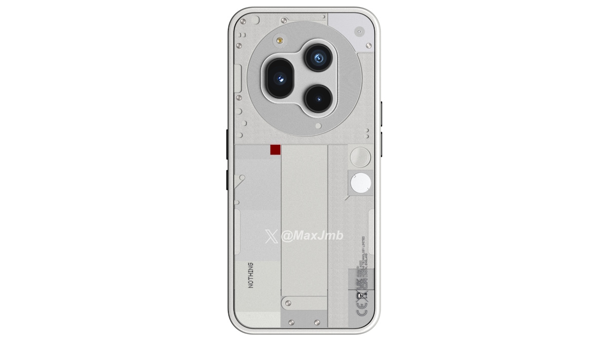 X 平台用户 Max Jambor 今日放出的渲染图显示,Nothing Phone(3)的背部设计发生了根本性改变,极具辨识度的 LED 灯带矩阵消失,大部分内部元件被灰色遮罩覆盖,无法确定是否采用了透明材质,横向排列的中央红色方块与白色转盘形成撞色点缀。