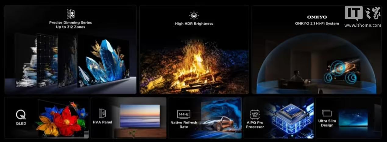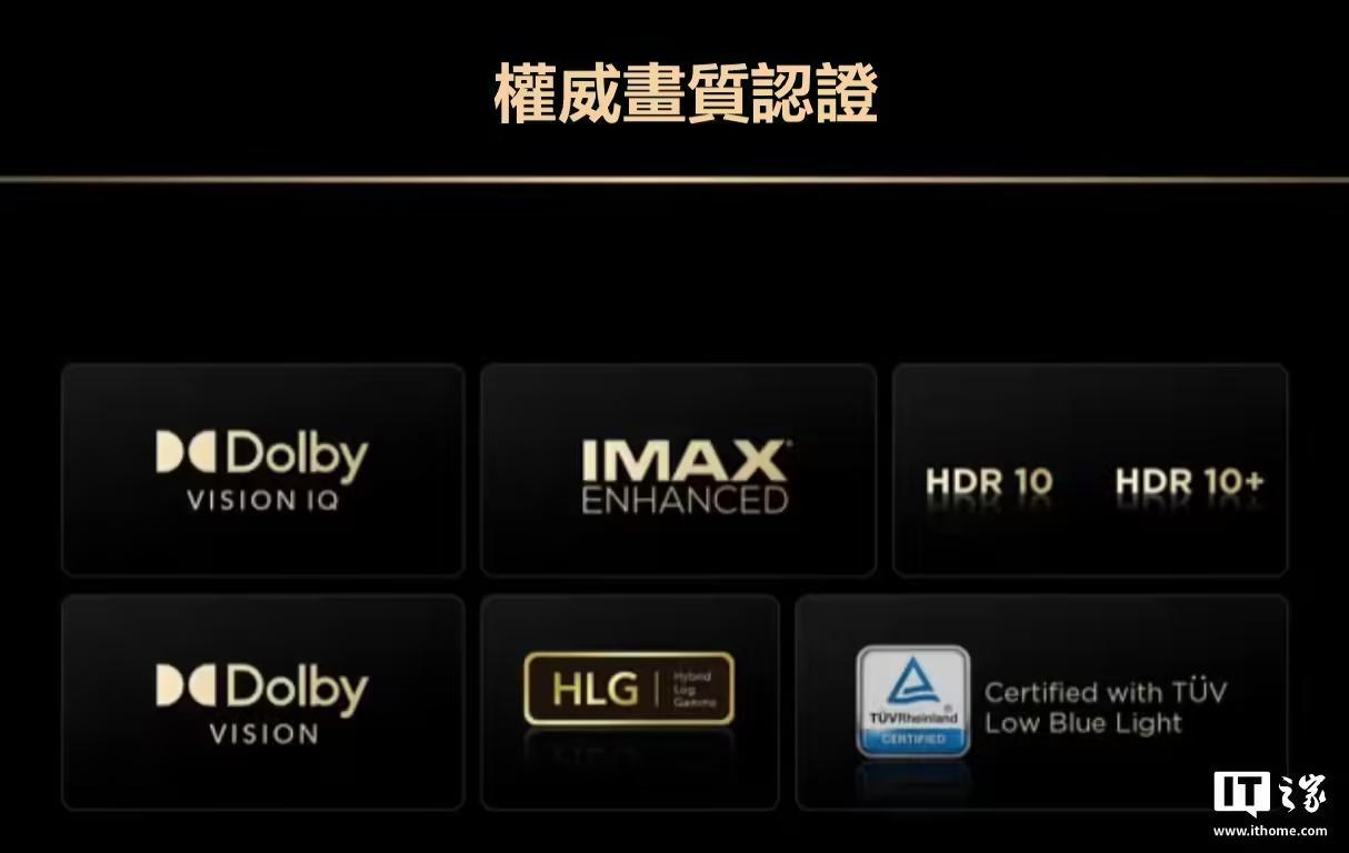 新品支持杜比视界 IQ、HDR 10+、HLG,获 IMAX Enhanced 和莱茵低蓝光认证,配备 AMD FreeSync Premium Pro 防撕裂技术和超宽屏显示等游戏功能。