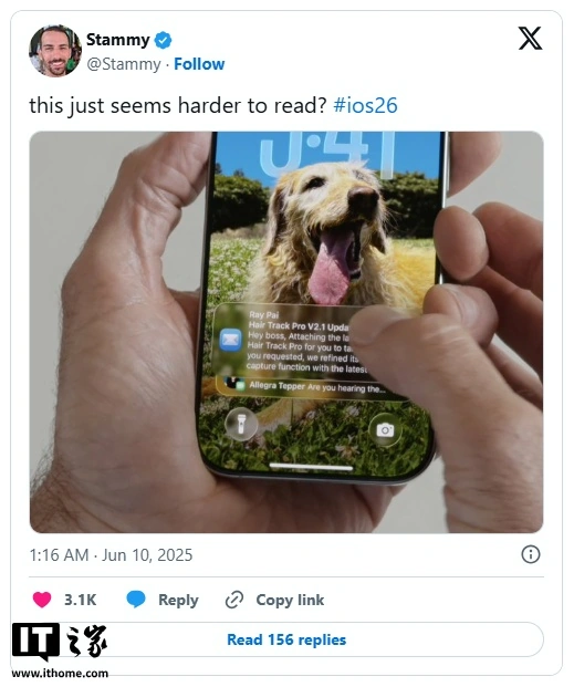 开发者和科技爱好者在测试“液态玻璃”设计初始版本时发现,当 iPhone 壁纸颜色较浅、亮度较高时,通知的可读性问题更为严重。