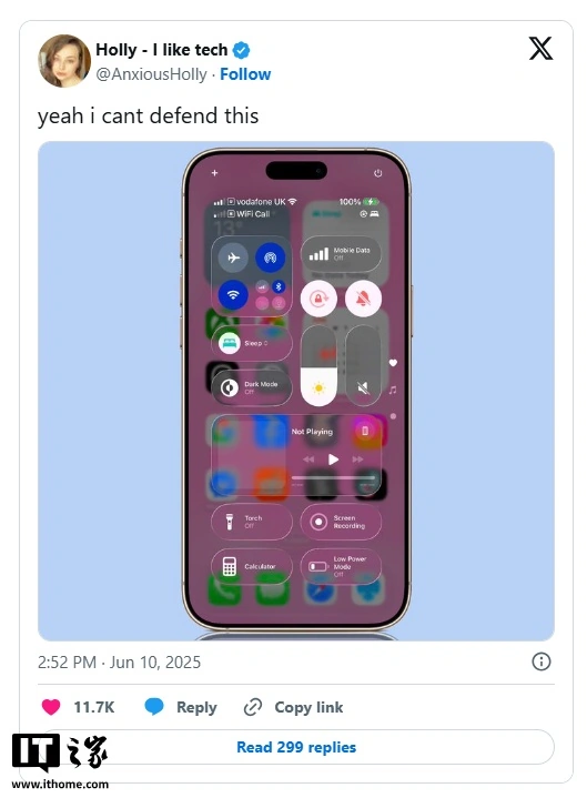 文章来源于互联网:IT之家-苹果 iOS 26“液态玻璃”设计褒贬不一:目前可读性差,但未来可期