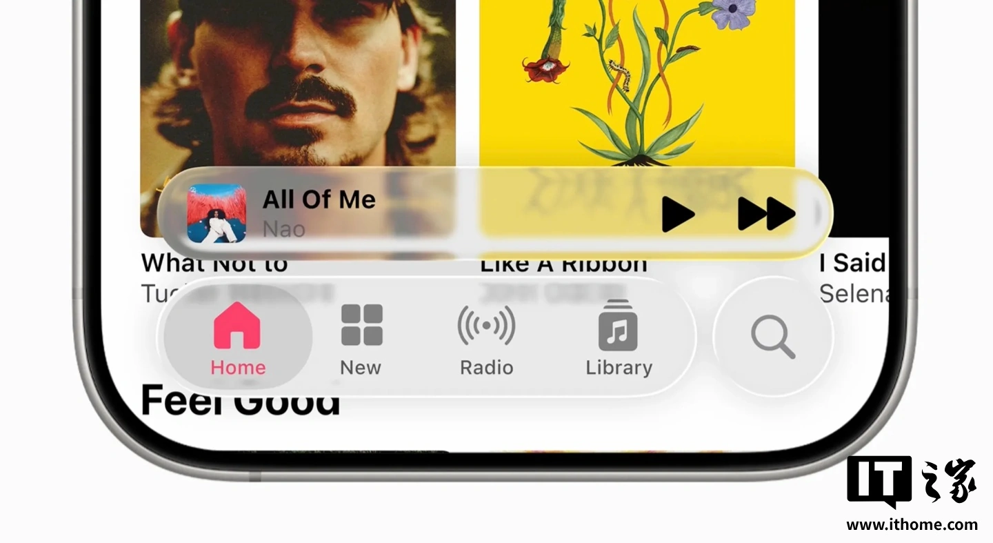 据IT之家了解,“液态玻璃”设计灵感来源于苹果的 Vision Pro 虚拟现实头显,其界面元素利用了玻璃的光学特性,具有折射光线和半透明材质的特点。这种设计不仅为 iPhone 的界面带来了现代化的视觉效果,还为未来扩展到其他设备(如 AR 眼镜)奠定了基础。然而,目前的测试版在可读性方面存在明显问题。例如,苹果官方发布的宣传图中,Apple Music 界面的艺术家名字在半透明的灰色背景上难以辨认。此外,iPhone 锁屏上的通知可读性也因背景壁纸的颜色而有所不同,浅色壁纸下,白色文本几乎与背景融为一体,难以阅读。这个问题甚至在苹果全球开发者大会主题演讲的视频片段中也能看到,模糊的通知似乎需要眯起眼睛才能看清。