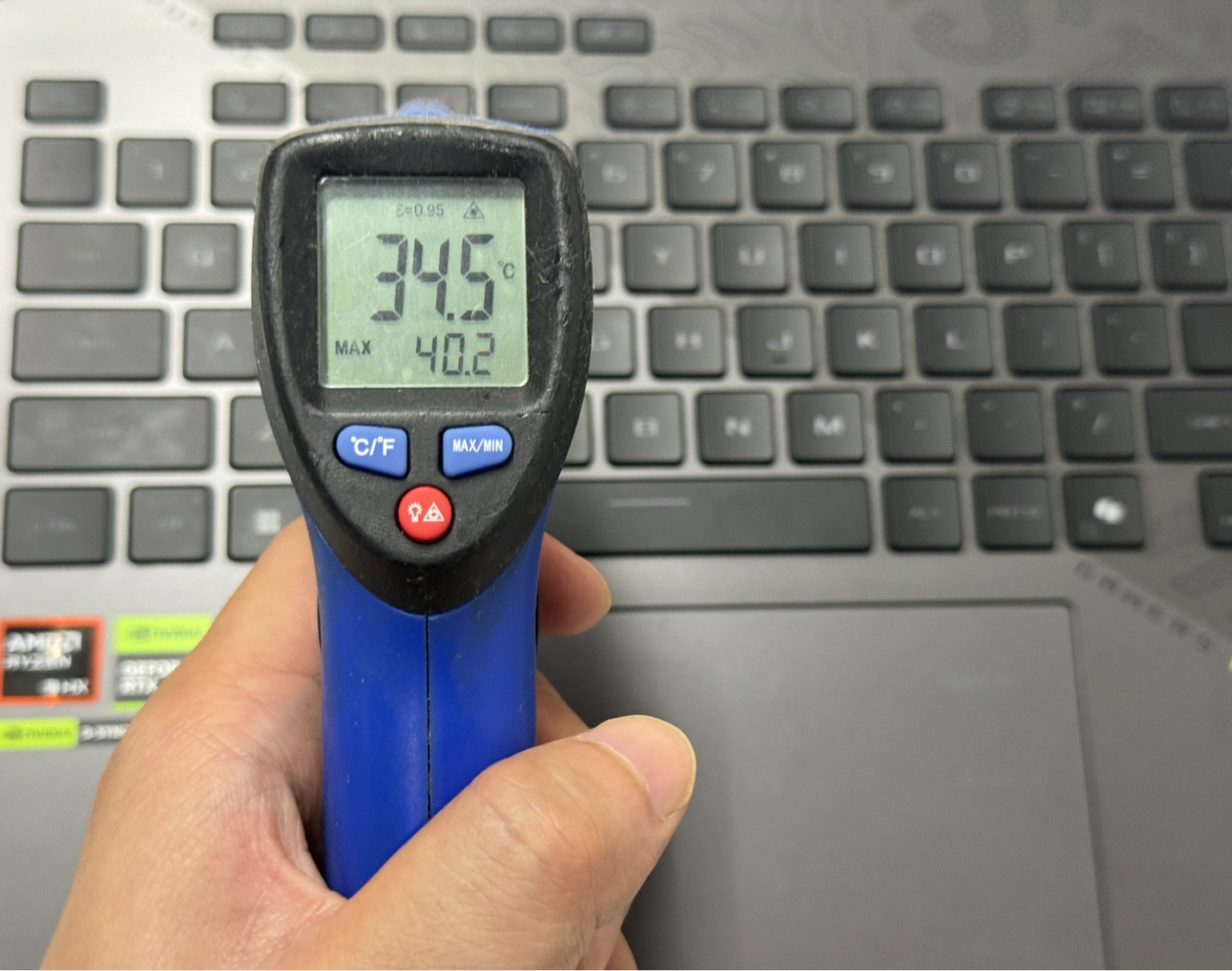 此时魔霸 9 的 CPU 核心温度 85℃、GPU 核心 86℃,而 C 面最高温度则是在 40.2℃ 左右。