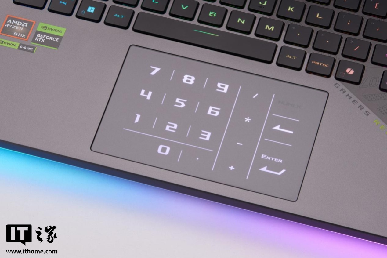 魔霸 9 的触控板尺寸较大,按压反馈清晰,并且有虚拟数字小键盘的功能,对于办公或是创意工作者来说还是很实用的。