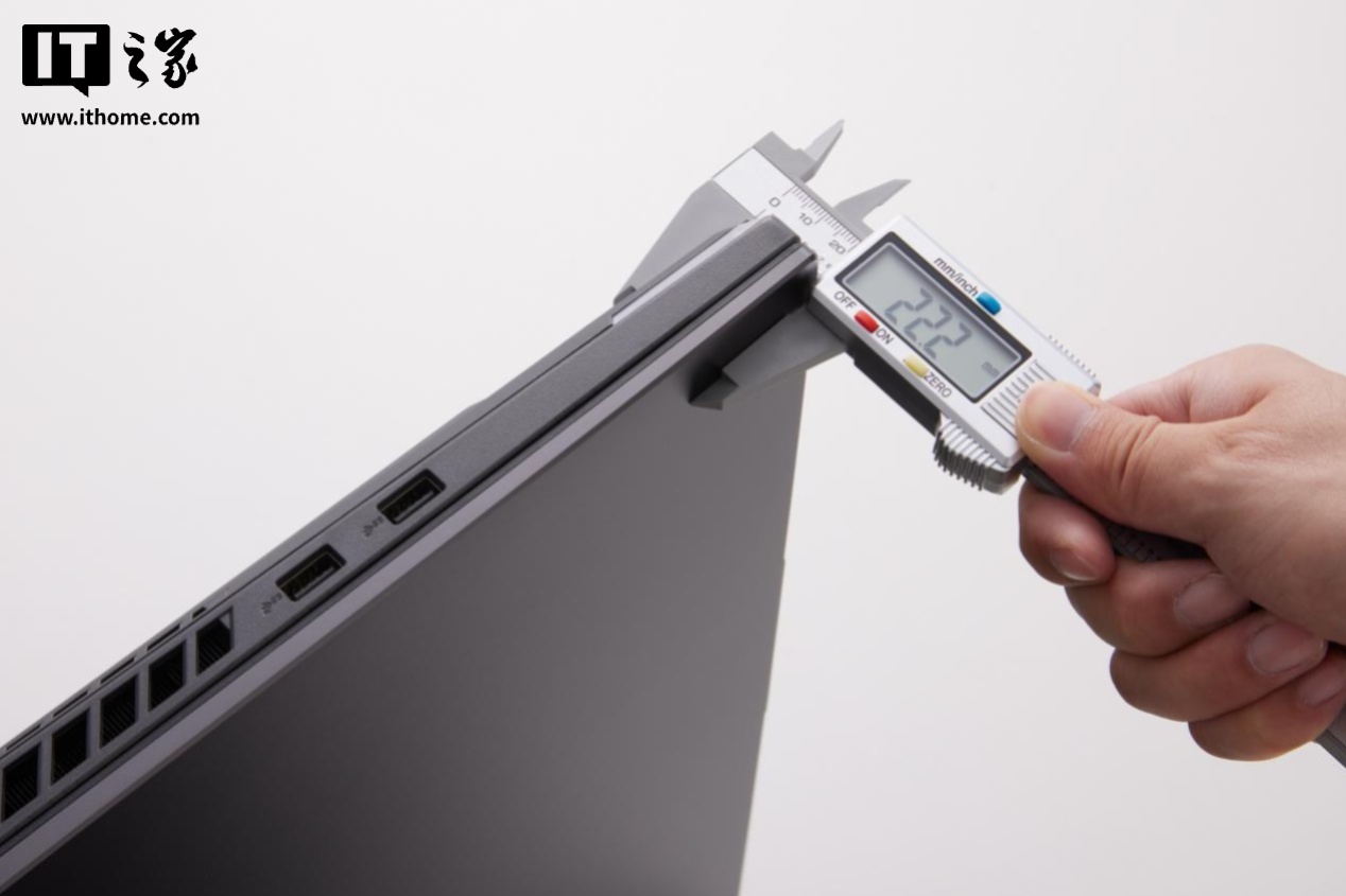 在尺寸与重量方面,IT之家实测其重量约为 2.37kg,厚度约为 2.2cm,测量不可避免有误差,仅供参考。