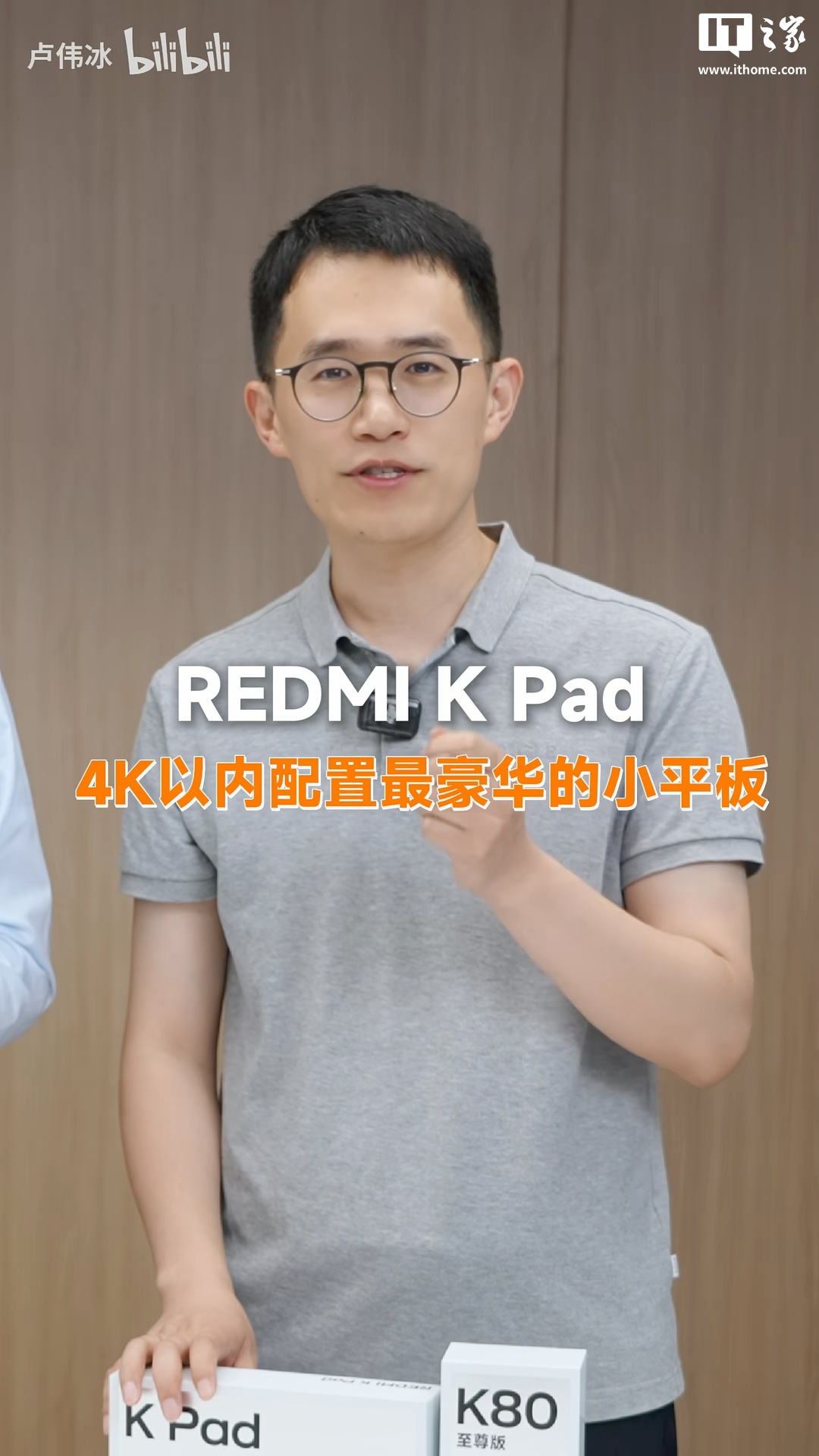 在小米集团合伙人、总裁卢伟冰今日发布的B站视频中,小米中国区市场部总经理、REDMI 品牌总经理王腾称 REDMI K80 至尊版手机和 K Pad 平板均将搭载天玑 9400+ 处理器,前者为“3000 元档最豪华的性能之王”,后者为“4000 元以内配置最豪华小平板”。