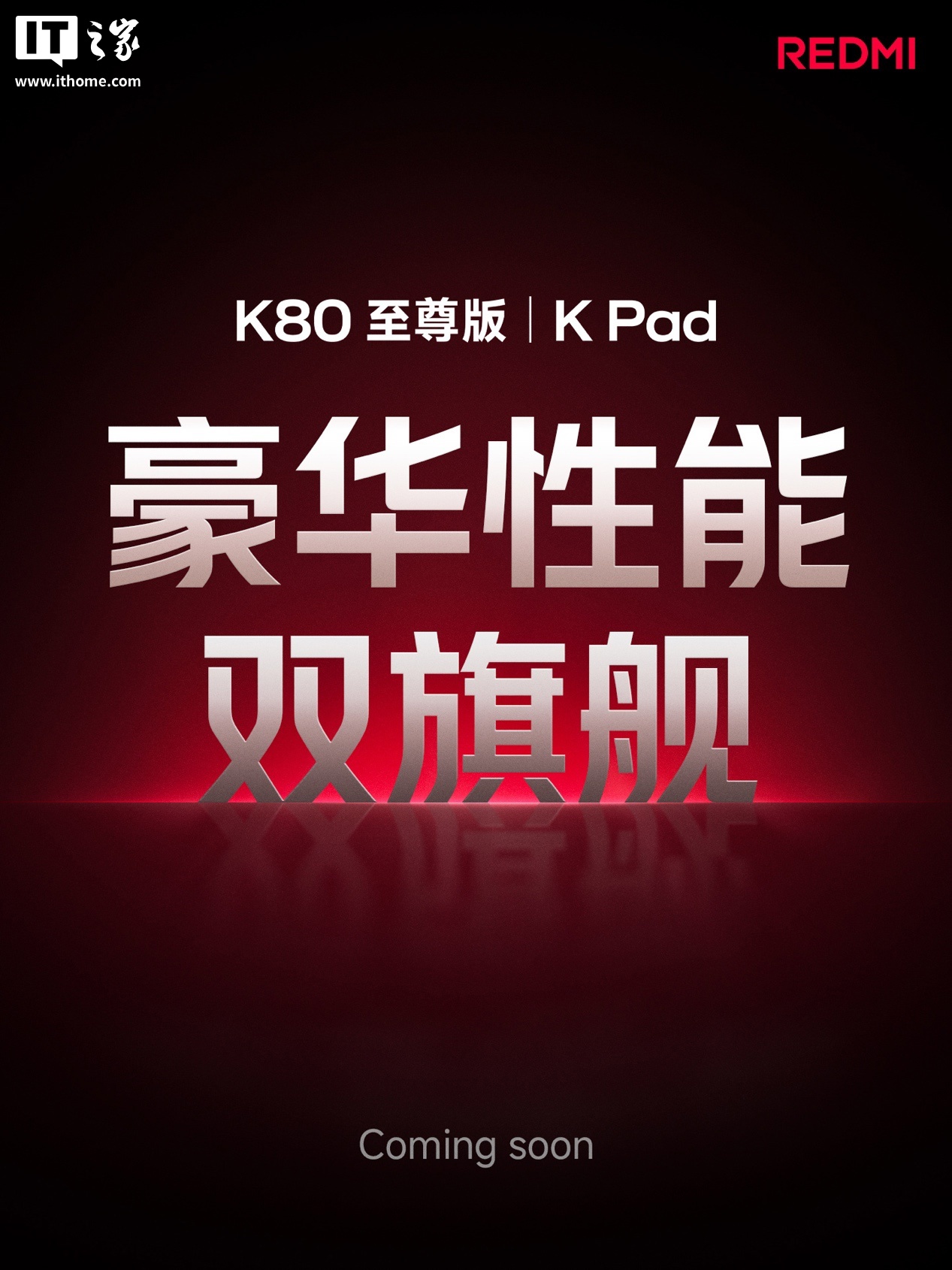 IT之家 6 月 13 日消息,官方今日透露,REDMI K80 至尊版手机、小米集团首款性能旗舰小平板 REDMI K Pad 均将搭载联发科天玑 9400+ 处理器。