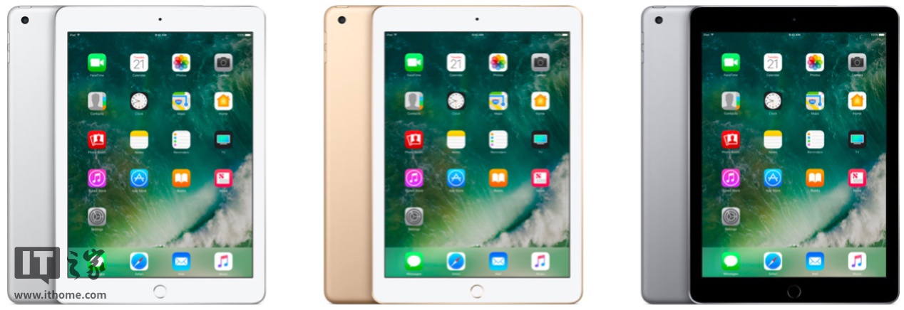 苹果 iPad 5 平板发布于 2017 年 3 月 21 日,搭载 9.7 英寸非全贴合视网膜屏幕,配有 A9 芯片;有太空灰、银色、金色三色可选,容量可选 32GB / 128GB。