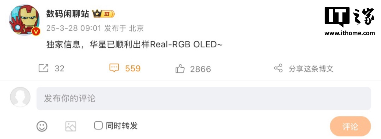 IT之家 6 月 14 日消息,博主 @数码闲聊站 发文,透露“2K Real RGB OLED 真不错,9 月开始批量供货”,IT之家综合博主历史发言及评论区,预计相应面板为 TCL 华星产品,届时有望应用于小米 16 / K90 系列手机中。