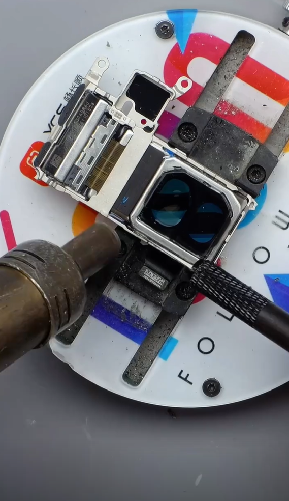 华为Pura 80 Ultra最大亮点是其配备的一镜双目长焦镜头,如果想一窥内部结构就必须完全拆开,因此博主这次用上了电磨笔进行切割。