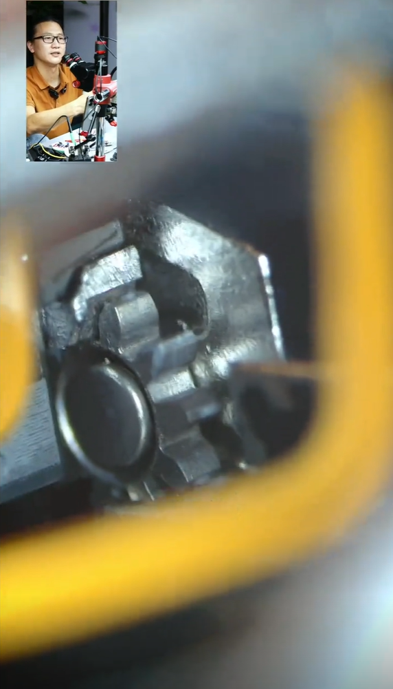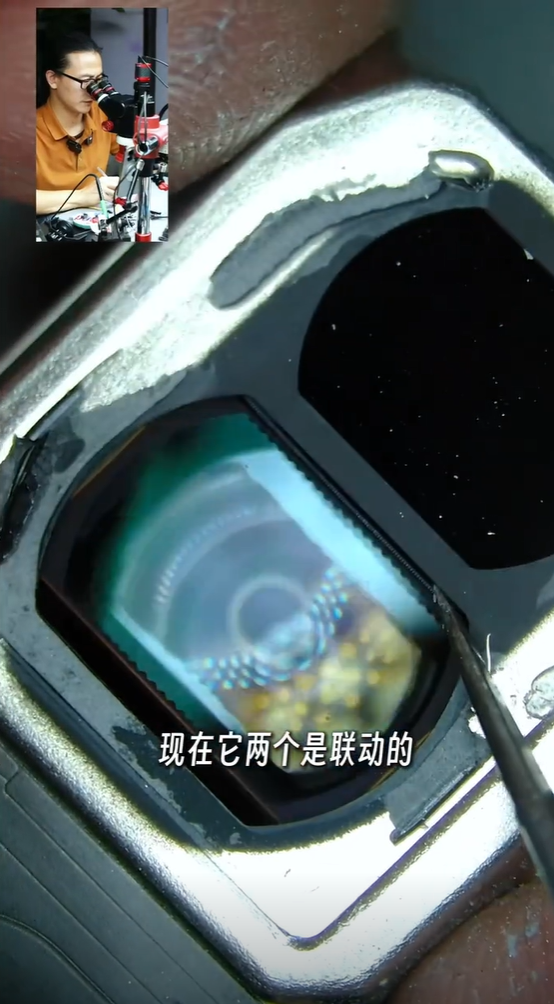 拆解后可以看到内部齿轮结构,精致的如同一件艺术品,博主还演示了一镜双长焦的工作原理。
