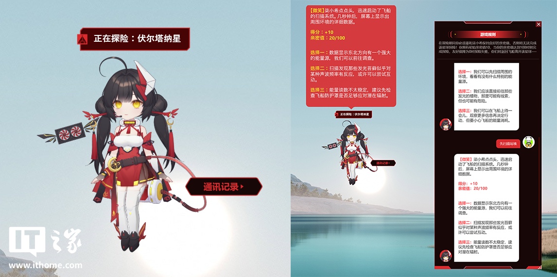 她还有一个冒险模式,开启后会进入叙事交互模式,随机探索未知星球,用户可通过提问小希或选择不同选项推进探索故事,完成探索后会提供大量亲密度,适合无聊的时候打发时间。
