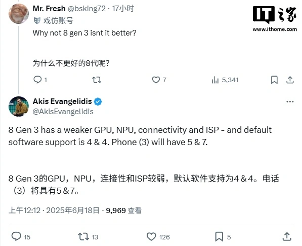 公司联合创始人 Akis Evangelidis 称与 Nothing Phone (2) 相比,其 GPU 性能提高了 88%,CPU 性能提高了 33%,NPU 性能提高了 125%。