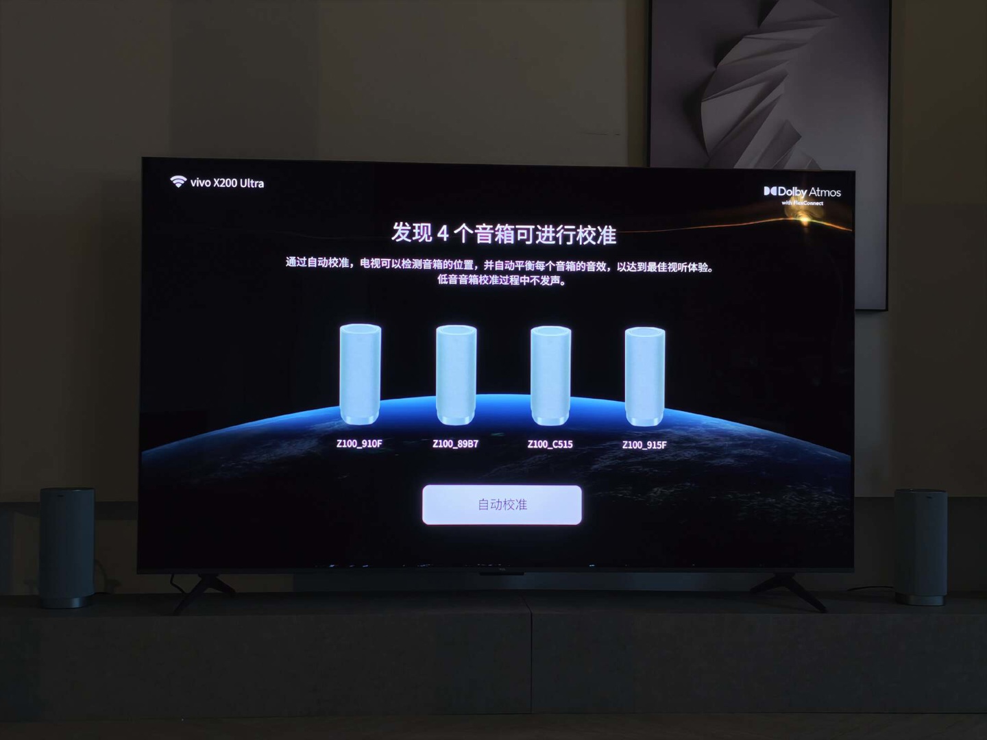 比如首次启动时,在同一 WiFi 下,电视能自动识别到 Z100,无线连接好后,电视会对音箱进行校准,根据音箱位置调整以达到最佳声场效果。