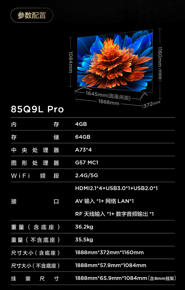 85 吋 Q9L Pro 实现绚彩 XDR 4000nits 的峰值亮度。