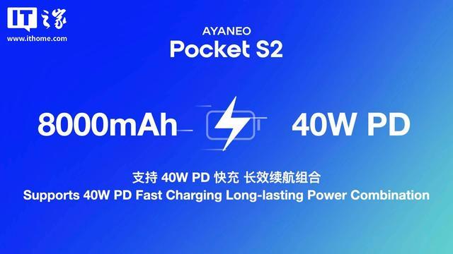 AYANEO Pocket S2 系列掌机续航能力有所提升。其中,Pocket S2 升级配备 8000mAh 电池,相比上一代提升 33%,支持 40W PD 快充和旁路充电;Pocket S2 Pro 在完全一致的机身尺寸下,以堆叠设计配备 10000mAh 电池,系同档产品最大电池,同时支持 60W PD 快充和旁路充电。