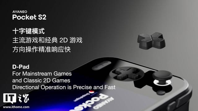 AYANEO Pocket S2 Pro 掌机首创更高自由度的可更换方向键设计,适配 FPS 游戏和格斗动作游戏。玩家可以根据不同类型游戏的操作需求,轻松拆卸更换十字键或者八向键,二者均为手感清脆的薄膜微动按键。