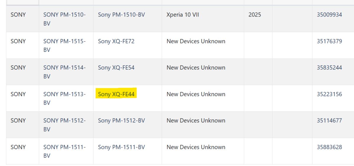 对比来看,2025 年旗舰机型 Xperia 1 VII 的型号为「XQ-FSxx」,OEM ID 以 PM-150x-BV 开头,与 Xperia 10 VII 的 PM-151x-BV 序列形成明显区分。