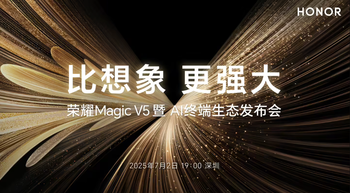 6 月 18 日,荣耀手机官方已经宣布,荣耀 Magic V5 暨 AI 终端生态发布会将于 7 月 2 日 19 时举行。而在 6 月 19 日,荣耀在上海举办了 AI 技术媒体沟通会,集中展示了其在 AI 大模型及智能体领域的最新进展,其中介绍的相关 AI 智能体技术和功能,都将在即将发布的荣耀 Magic V5 折叠屏手机中落地。